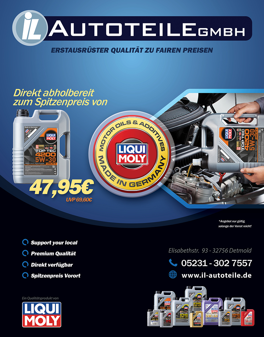 Wir haben derzeit für euch mehrere Produkte von Liqui Moly für euch im Angebot, hier eine kleine Auswahl, ruft uns einfach unter: 05231 - 302 7557 an.